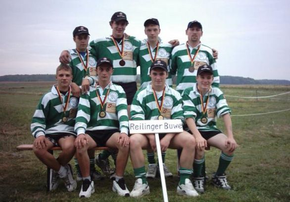 Die Jugend Deutsche Meisterschaft in Momberg Beim der Deutschen Meisterschaft in Momberg sorgten die Reilinger Buwe für eine große Überraschung, indem sie den 7.Platz von 14 angetretenen Mannschaften belegten. Das selbst gesteckte Ziel unter die besten 10 Deutschlands zu kommen hatten die Zieher doch klar erreicht. Dies ist sicher ein großer Verdienst des Jugend-Trainers Rui Dias, der die Jugend immer zu einem harten Training, manchmal auch zwingen musste. Die reilinger Mannschaften bestand bei der deutschen Meisterschaft 2003 aus folgenden Ziehern: Sascha Heger, Dominic Kraft, Michael Wolf, Daniel Ehehalt, Simon Schweikert, Victor Reisch und Philipp Geng.